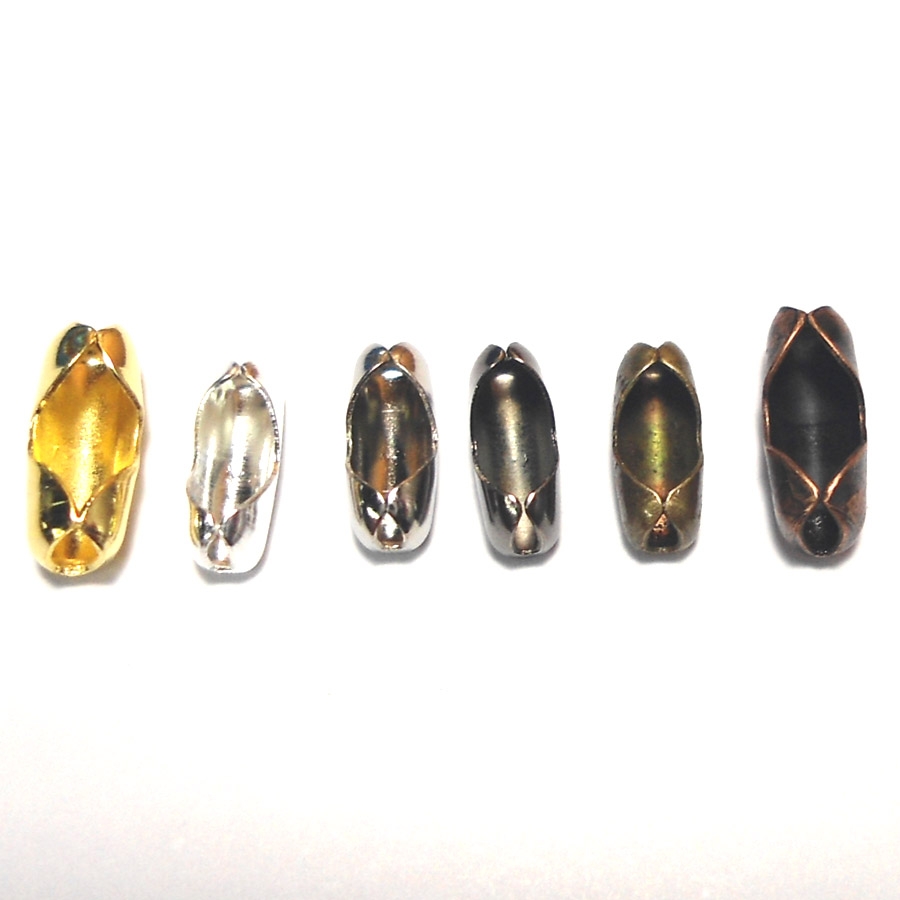Cierres para unir cadena de bolas de 2mm, disponibles en: plata, níquel, cobre, bronce, bronce pipe y dorado.