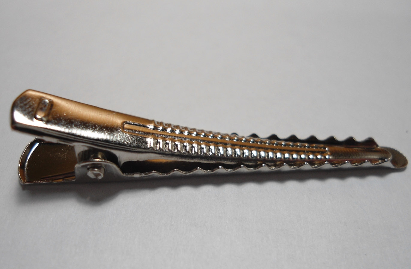 Horquilla para el pelo de 50 mm de largo y 8 mm de ancho, fabricada en níquel.