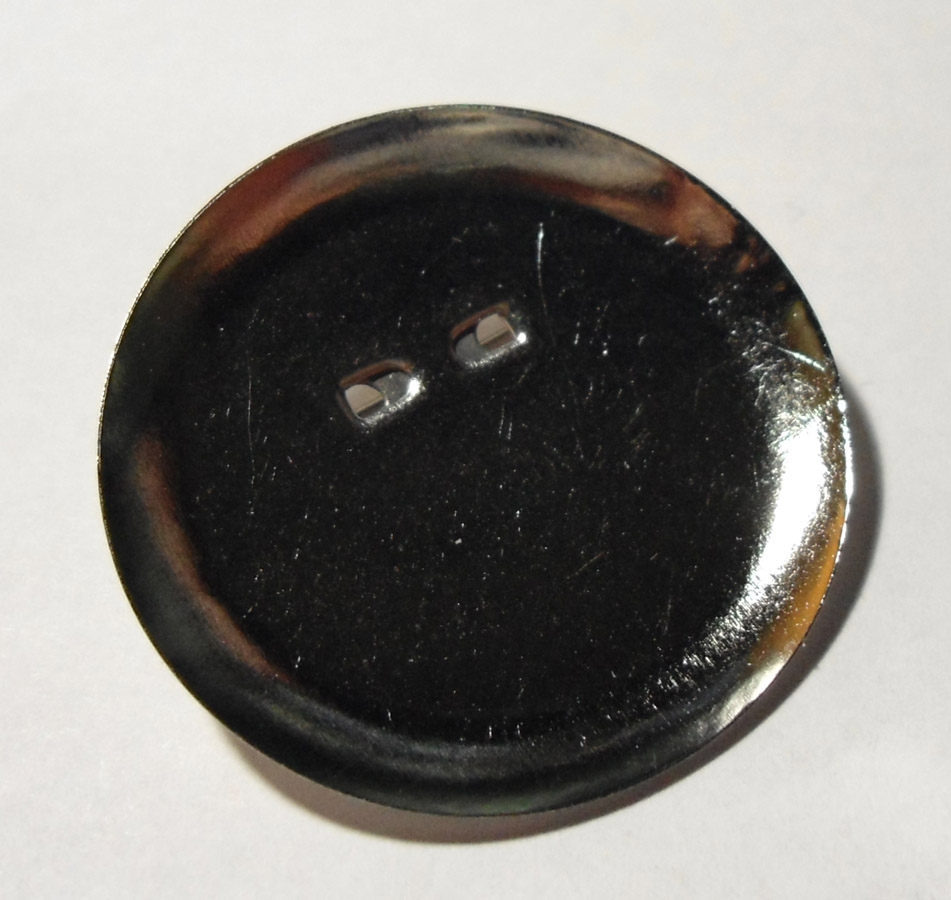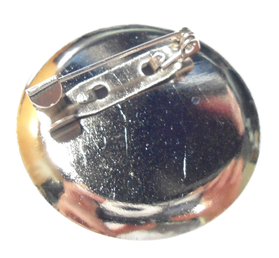 Broche con forma circular de 3,6 cm de diámetro de tono plateado.