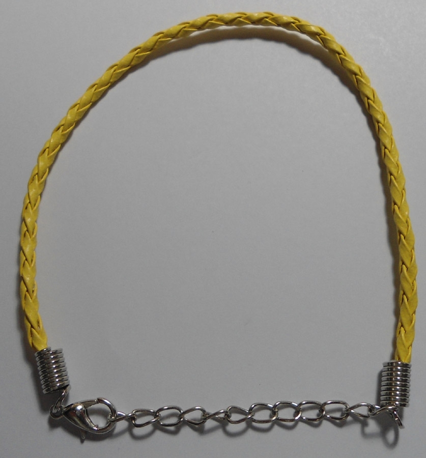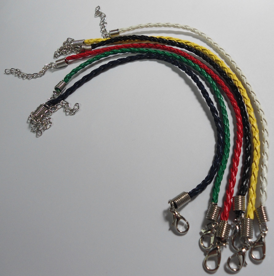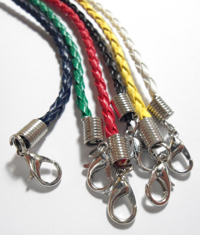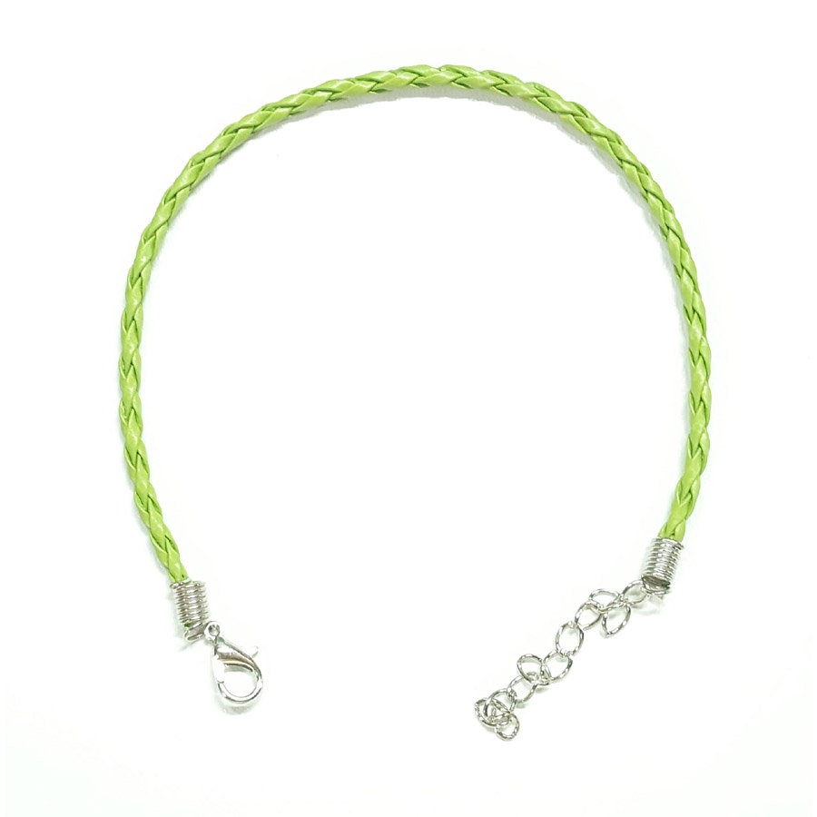 Pulsera de cuero con cierre mosquetón disponible en 6 colores: negro, amarillo, rojo, verde, azul y blanco.