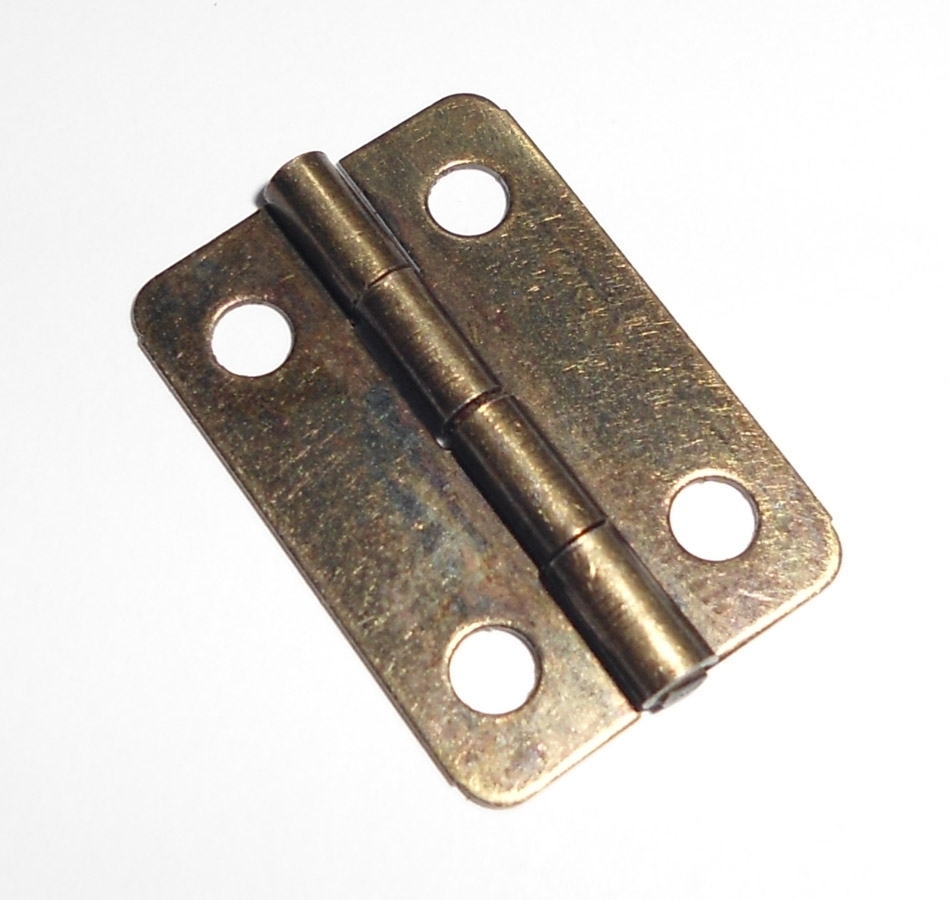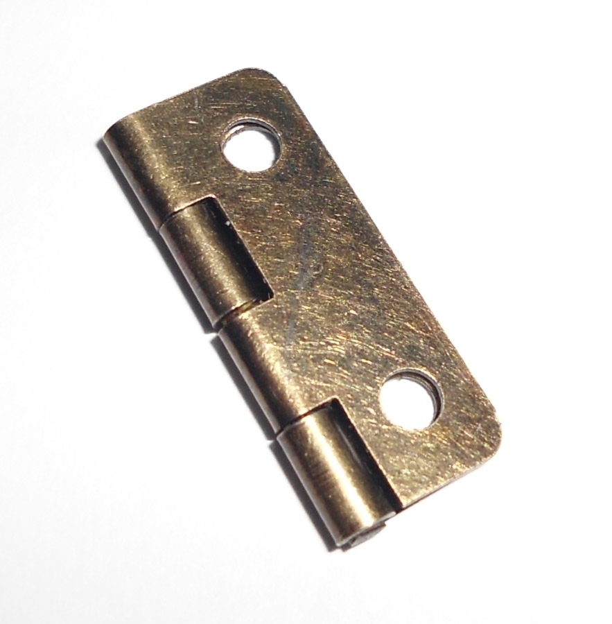Bisagra de aleación en tono cobre con cuatro perforaciones.