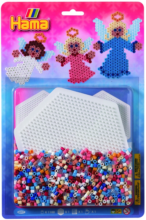 blister ángeles (1100 piezas y 1 placa pegboard) hama beads midi