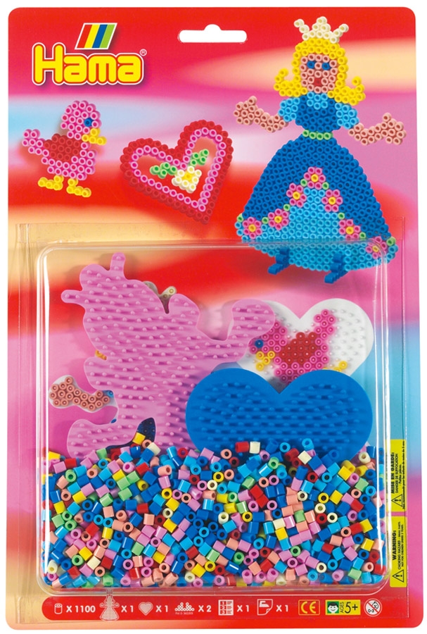 blister corazón y princesa (1100 piezas y 2 placas pegboards) hama beads midi