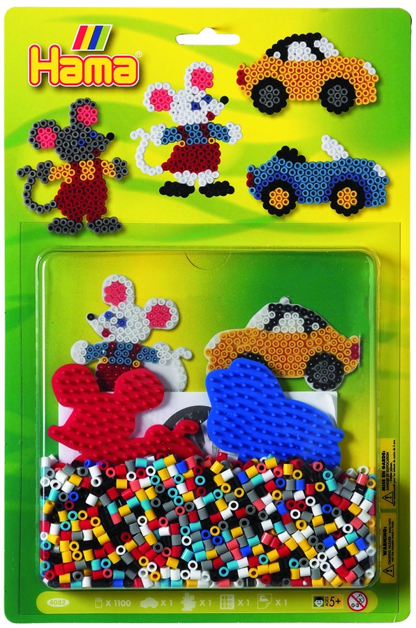Este blister de inicio hama beads midi ratón y coche contiene: