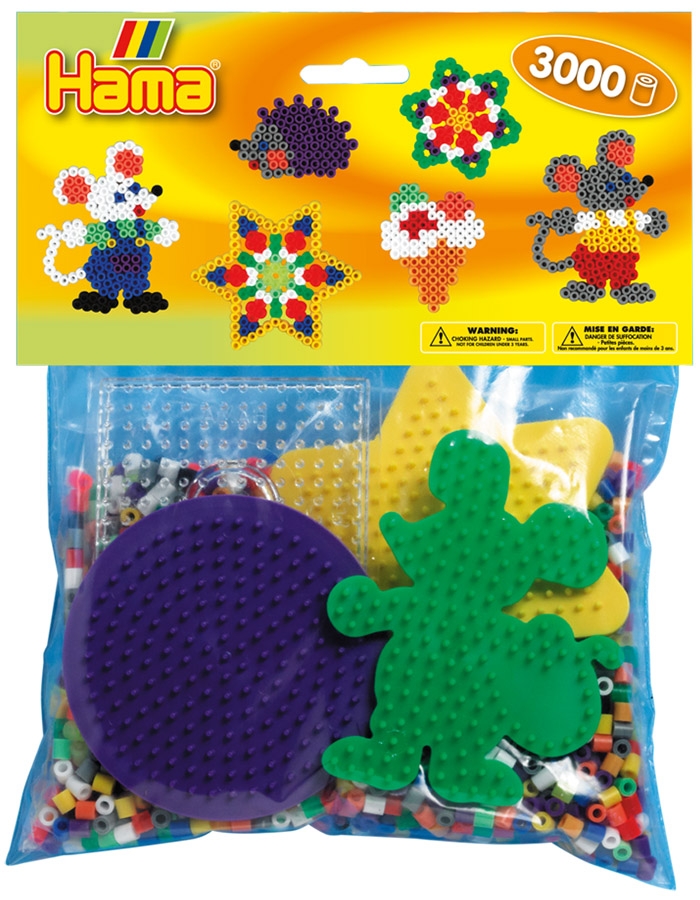 pack de inicio ratón (3000 piezas y 4 placas pegboards) hama beads midi