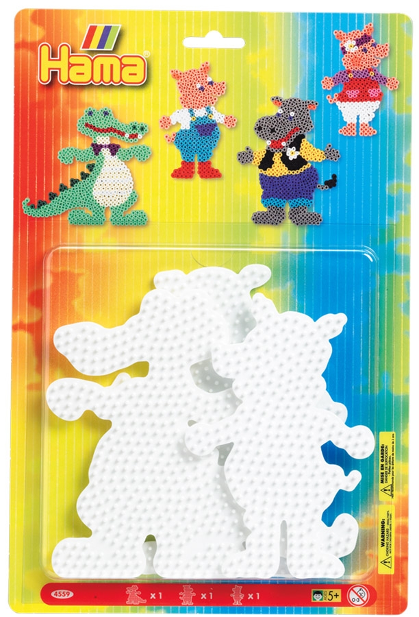blíster 3 placas pegboards (cerdo, hipopótamo y cocodrilo) para hama beads midi