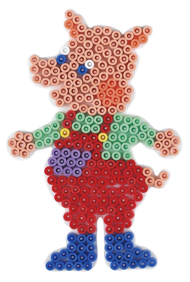 Blíster que contiene 3 placas pegboards hama beads midi con la forma de cerdo, hipopótamo y cocodrilo.